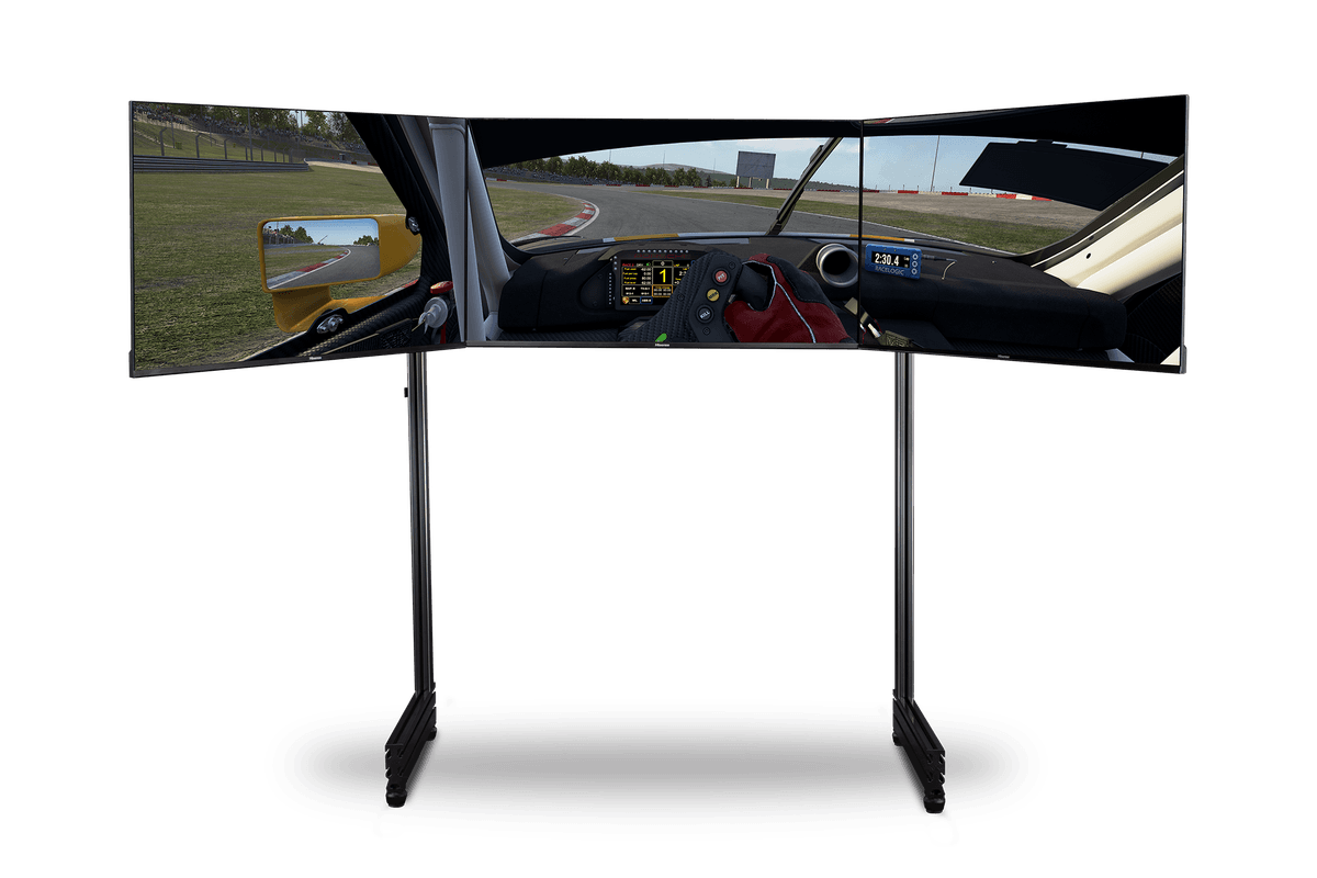 The Next Level Racing® Elite Triple Monitor Stand Add On transforms the Elite Freestanding Single Monitor Stand into the ultimate triple screen solution. The unparalleled strength of the aluminium extrusion means it supports three 21”-43” screens with the included VESA mounts and includes height-adjustable feet, custom cable management clips and a spirit level for the perfect immersive racing simulator cockpit setup.